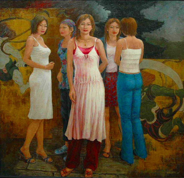 [会員奨励賞] 語らい「古都」 (油S100) 岡本 邦治
